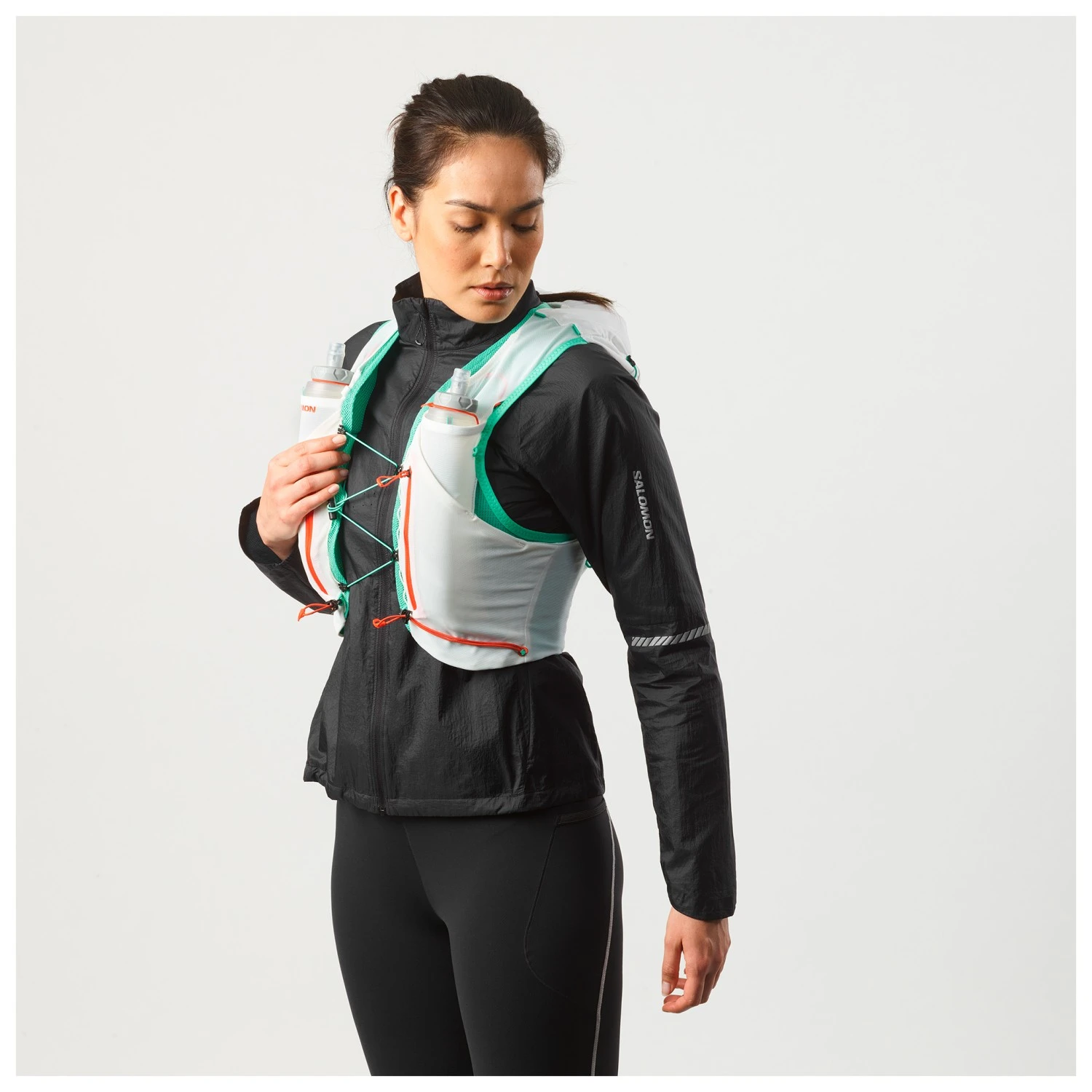 Le sac à dos de trail ADV Skin 12 Set de la marque Salomon est idéal pour des parcours plus longs ! Le système de portage SensiFit s’adapte parfaitement à votre corps. Les matériaux extensibles et respirants sont très confortables. La sangle de poitrine est élastique et réglable individuellement, pour que le sac à dos ne bouge pas. La poche arrière est accessible des deux côtés. Les gourdes trouvent leur place sur le devant du sac. Ce modèle est vraiment bien pensé !