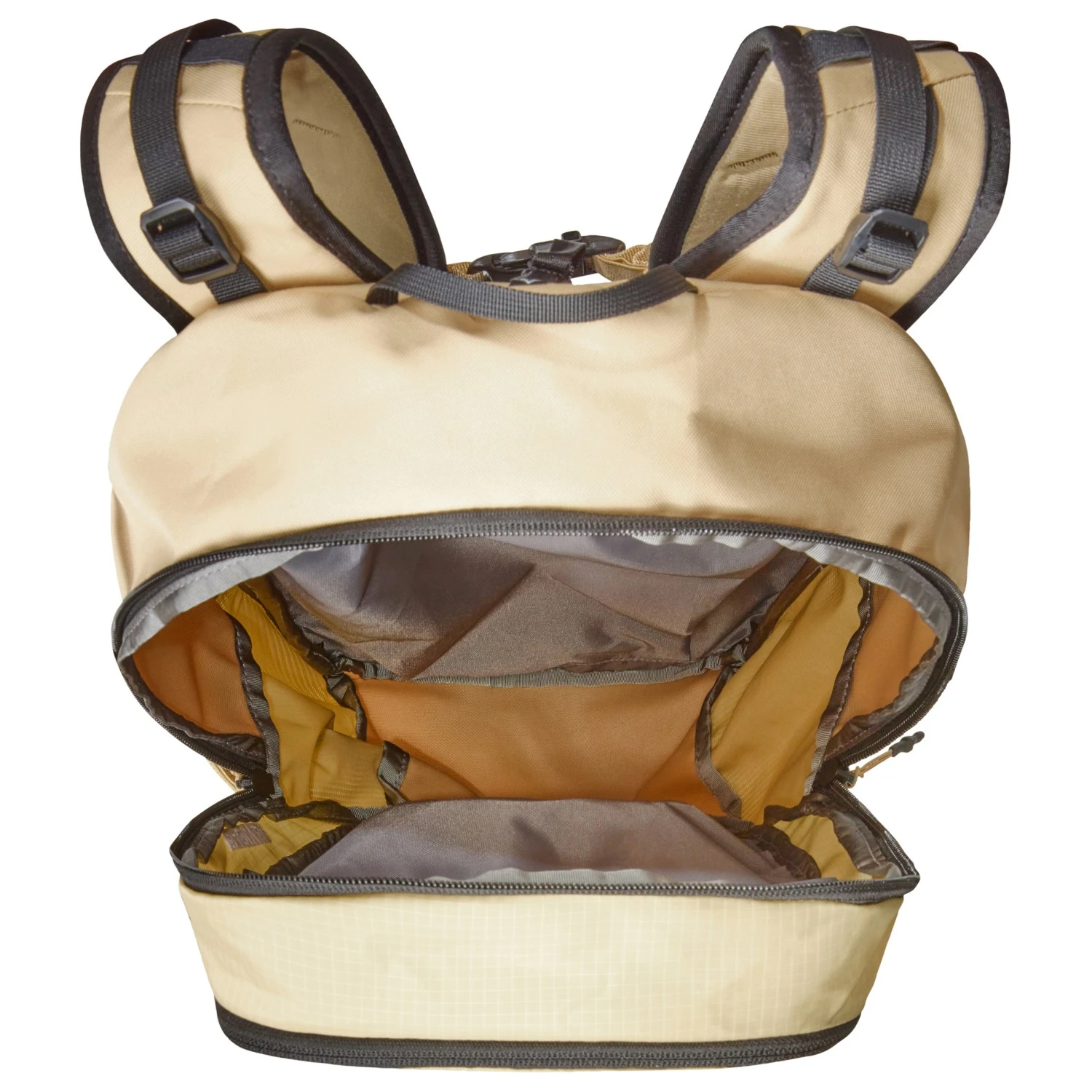 | Compartiments & fixations | 2 poches latérales, compartiment avant, attache pour bâtons de marche |